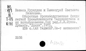 ИНИОН РАН ИМИДЖ-КАТАЛОГ ОББО ИНИОН РАН Отдел ББО при Институте мировой экономики и международных отношений... Предметный каталог Критика и самокритика в организациях и учреждениях. СССР - Лейпцигс... Легкая промышленность. СССР. Производственные фонды