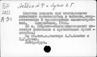 Литейное дело. СССР. Планирование