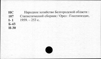 Народное хозяйство. Отдельные республики и местности СССР. Белгородская область