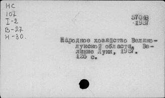 Народное хозяйство. Отдельные республики и местности СССР. Великолукская область