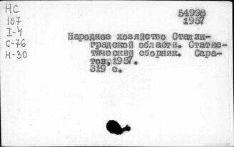 Народное хозяйство. Отдельные республики и местности СССР. Волгоградская область