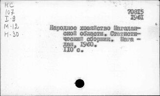 ИНИОН РАН ИМИДЖ-КАТАЛОГ ОББО ИНИОН РАН Отдел ББО при Институте мировой экономики и международных отношений... Предметный каталог Народное хозяйство. Восточная Сибирь - Народный контроль. СССР Народное хозяйство. Отдельные республики и местности СССР. Магаданс...