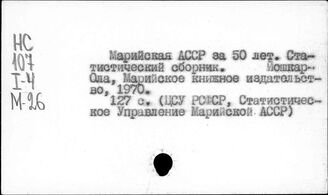 ИНИОН РАН ИМИДЖ-КАТАЛОГ ОББО ИНИОН РАН Отдел ББО при Институте мировой экономики и международных отношений... Предметный каталог Народное хозяйство. Восточная Сибирь - Народный контроль. СССР Народное хозяйство. Отдельные республики и местности СССР. Марийска...