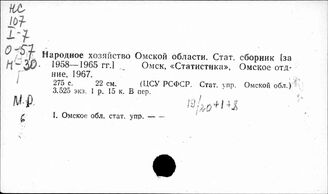 Народное хозяйство. Отдельные республики и местности СССР. Омская область