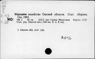 Народное хозяйство. Отдельные республики и местности СССР. Ошская область