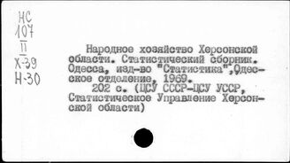 Народное хозяйство. Отдельные республики и местности СССР. Херсонская область