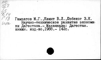 ИНИОН РАН ИМИДЖ-КАТАЛОГ ОББО ИНИОН РАН Отдел ББО при Институте мировой экономики и международных отношений... Предметный каталог Научно-технический прогресс - Научно-технический прогресс и управле... Научно-технический прогресс. Дагестанская АССР