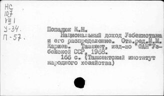 Национальный доход. Узбекская ССР