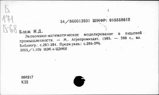 ИНИОН РАН ИМИДЖ-КАТАЛОГ ОББО ИНИОН РАН Отдел ББО при Институте мировой экономики и международных отношений... Предметный каталог Переходный период от капитализма к социализму - "Планирование" капи... Пищевая промышленность. СССР. Математические методы