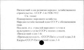 ИНИОН РАН ИМИДЖ-КАТАЛОГ ОББО ИНИОН РАН Отдел ББО при Институте мировой экономики и международных отношений... Предметный каталог Профессиональная ориентация. СССР - Пятилетний план развития народн... Пятилетний план народно-хозяйственного строительства СССР, первый. ...