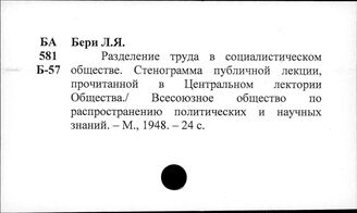 Разделение труда при социализме