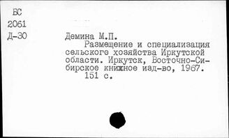 Сельское хозяйство. СССР. Отдельные республики, края, области. Иркутская область