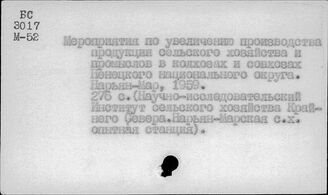 Сельское хозяйство. СССР. Отдельные республики, края, области. Ненецкий национальный округ