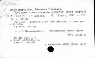 ИНИОН РАН ИМИДЖ-КАТАЛОГ ОББО ИНИОН РАН Отдел ББО при Институте мировой экономики и международных отношений... Систематический каталог Африка. Промышленность. Сельское хозяйство. Транспорт и связь. Торг...