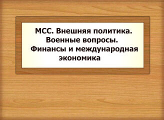 МСС. Внешняя политика. Военные вопросы. Финансы и международная экономика