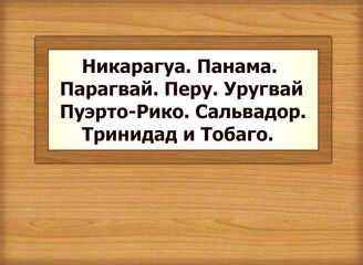 Никарагуа. Панама. Парагвай. Перу. Пуэрто-Рико. Сальвадор. Тринидад и Тобаго. Уругвай