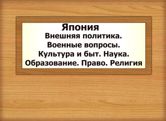 Япония. Внешняя политика. Военные вопросы. Культура и быт. Наука. Образование. Право. Религия