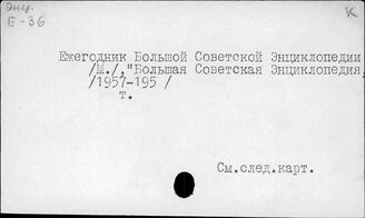 ИНИОН РАН ИМИДЖ-КАТАЛОГ ОББО ИНИОН РАН Отдел ББО при Институте мировой экономики и международных отношений... Алфавитный каталог (кириллица) Е Ежегодник Большой Советской энциклопедии