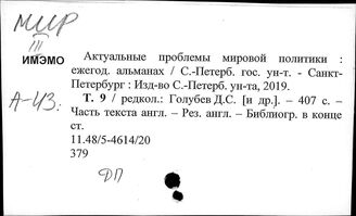 Отдел ББО при Институте мировой экономики и международных отношений...