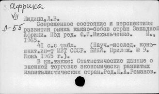 ИНИОН РАН ИМИДЖ-КАТАЛОГ ОББО ИНИОН РАН Отдел ББО при Институте мировой экономики и международных отношений... Систематический каталог Африка. Промышленность. Сельское хозяйство. Транспорт и связь. Торг... Африка. Отрасли сельского хозяйства. Продукция. Цены