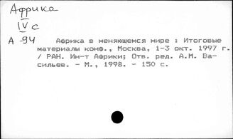 ИНИОН РАН ИМИДЖ-КАТАЛОГ ОББО ИНИОН РАН Отдел ББО при Институте мировой экономики и международных отношений... Систематический каталог Африка. Промышленность. Сельское хозяйство. Транспорт и связь. Торг... Африка. Политические партии. Государственные и политические деятели
