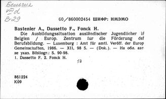 ИНИОН РАН ИМИДЖ-КАТАЛОГ ОББО ИНИОН РАН Отдел ББО при Институте мировой экономики и международных отношений... Систематический каталог Беларусь. Бельгия. Бенилюкс. Болгария. Босния и Герцеговина Бельгия. Проблема занятости. Подготовка кадров. Оплата труда