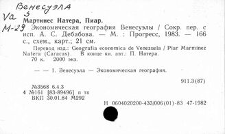 ИНИОН РАН ИМИДЖ-КАТАЛОГ ОББО ИНИОН РАН Отдел ББО при Институте мировой экономики и международных отношений... Систематический каталог Венесуэла. Вест-Индия. Гаити. Гайана. Гватемала. Гвиана. Гондурас Венесуэла. Экономическая география. Сырьевые ресурсы