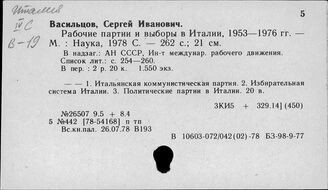 ИНИОН РАН ИМИДЖ-КАТАЛОГ ОББО ИНИОН РАН Отдел ББО при Институте мировой экономики и международных отношений... Систематический каталог Италия. Внешняя политика. Внутренняя политика. Национальная политик... Италия. Политические партии и организации