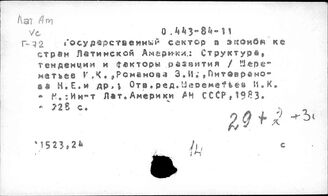 ИНИОН РАН ИМИДЖ-КАТАЛОГ ОББО ИНИОН РАН Отдел ББО при Институте мировой экономики и международных отношений... Систематический каталог Латинская Америка. География. История. Экономика Латинская Америка. Государственно-монополистический капитализм. Рол...