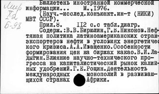 ИНИОН РАН ИМИДЖ-КАТАЛОГ ОББО ИНИОН РАН Отдел ББО при Институте мировой экономики и международных отношений... Систематический каталог Латинская Америка. Промышленность. Сельское хозяйство. Транспорт и ... Латинская Америка. Энергетика. Энергетический кризис