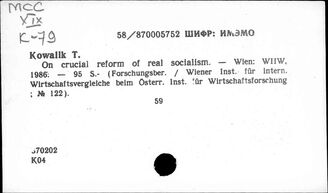 ИНИОН РАН ИМИДЖ-КАТАЛОГ ОББО ИНИОН РАН Отдел ББО при Институте мировой экономики и международных отношений... Систематический каталог МСС. Общие вопросы. Внутренняя политика. Социальная политика. Куль... МСС. Зарубежные авторы о мировой системе социализма