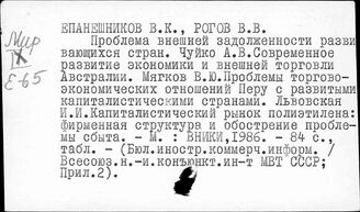 ИНИОН РАН ИМИДЖ-КАТАЛОГ ОББО ИНИОН РАН Отдел ББО при Институте мировой экономики и международных отношений... Систематический каталог Никарагуа. Панама. Парагвай. Перу. Пуэрто-Рико. Сальвадор. Тринидад... Перу. Внешняя экономика. Внешняя торговля. Иностранный капитал
