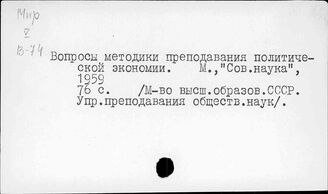 Политэкономия. Вопросы преподавания и научно-исследовательской работы
