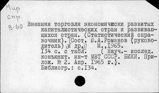 ИНИОН РАН ИМИДЖ-КАТАЛОГ ОББО ИНИОН РАН Отдел ББО при Институте мировой экономики и международных отношений... Систематический каталог Развивающиеся страны. Внешняя экономика и торговля Развивающиеся страны. Торговля с развитыми капиталистическими странами
