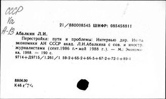 ИНИОН РАН ИМИДЖ-КАТАЛОГ ОББО ИНИОН РАН Отдел ББО при Институте мировой экономики и международных отношений... Систематический каталог СССР. Экономика. Организация. Управление. Реформы СССР. Управление и организация экономики (издания до 2001 года)