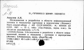 ИНИОН РАН ИМИДЖ-КАТАЛОГ ОББО ИНИОН РАН Отдел ББО при Институте мировой экономики и международных отношений... Систематический каталог Япония. Промышленность. Сельское хозяйство. Транспорт и связь Япония. Научно-технический прогресс. Автоматизация. ЭВМ