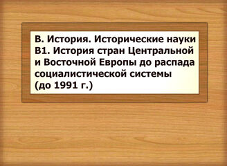 В. История. Исторические науки В1 История стран Центральной и Восточной Европы до распада социалистической системы (до 1991 г.)