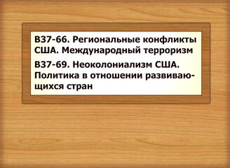 В37-66 Региональные конфликты США. Международный терроризм В37-69 Неоколониализм США. Политика в отношении развивающихся стран