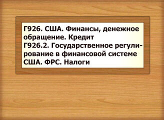Г926 США. Финансы, денежное обращение. Кредит Г926.2 Государственное регулирование в финансовой системе США. ФРС. Налоги