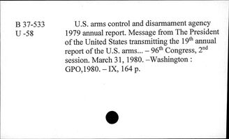 ИНИОН РАН ИМИДЖ-КАТАЛОГ ОББО ИНИОН РАН Отдел ББО при Институте США и Канады РАН (ИСК РАН) Алфавитный каталог (латиница) U United States. Arms control and disarmament agency
