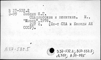 ИНИОН РАН ИМИДЖ-КАТАЛОГ ОББО ИНИОН РАН Отдел ББО при Институте США и Канады РАН (ИСК РАН) Систематический каталог В 37-532.2 США. Конгресс. Лоббизм В 37-532.6 Правительство США В 37-532.5 Партии в конгрессе США
