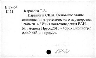 ИНИОН РАН ИМИДЖ-КАТАЛОГ ОББО ИНИОН РАН Отдел ББО при Институте США и Канады РАН (ИСК РАН) Систематический каталог В 37-63 Культурные межгосударственные связи США В 37-64 Отношения С... В 37-64 США и Израиль