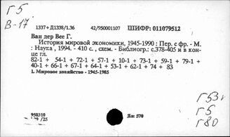 ИНИОН РАН ИМИДЖ-КАТАЛОГ ОББО ИНИОН РАН Отдел ББО при Институте США и Канады РАН (ИСК РАН) Систематический каталог Г 5 Мировая экономика Г 82. Экономика отдельных капиталистических с... Г 53 Экономические отношения между капиталистическими странами