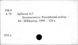 ИНИОН РАН ИМИДЖ-КАТАЛОГ ОББО ИНИОН РАН Отдел ББО при Институте США и Канады РАН (ИСК РАН) Систематический каталог РА - Россия и США: двусторонние отношения РФ. История, политика, эк... РФ 8 Военная политика и вооруженные силы. Разведывательная деятельн...