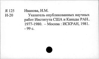 ИНИОН РАН ИМИДЖ-КАТАЛОГ ОББО ИНИОН РАН Отдел ББО при Институте США и Канады РАН (ИСК РАН) Систематический каталог Я. Справочники Я-24 Общие биографические и библиографические справо... Я 125 Другие библиографические издания